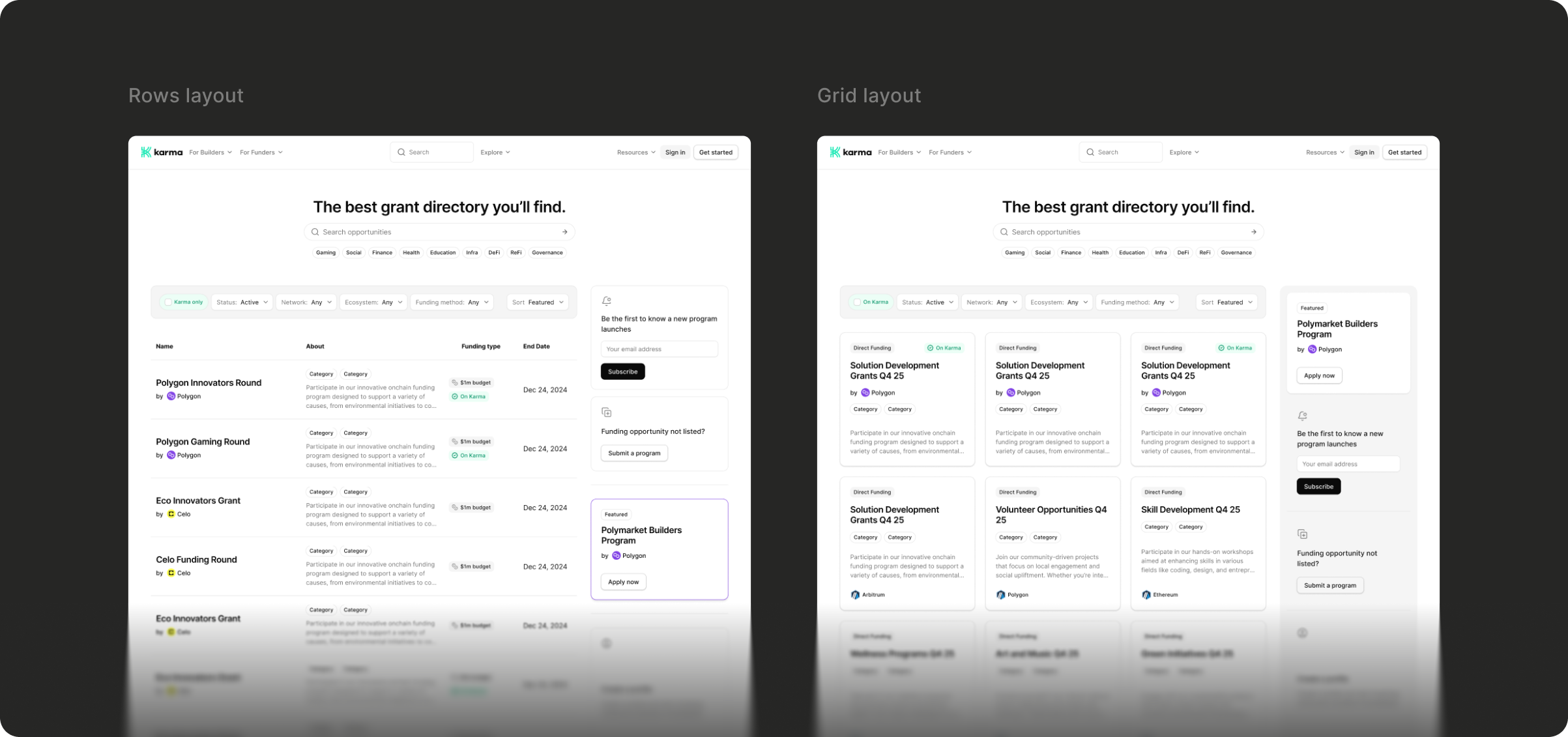 The directory looked like a generic funding aggregator. Builders couldn't tell which opportunities offered the premium Karma experience: easier application, profile integration, milestone tracking, and reputation portability. The value proposition was invisible.