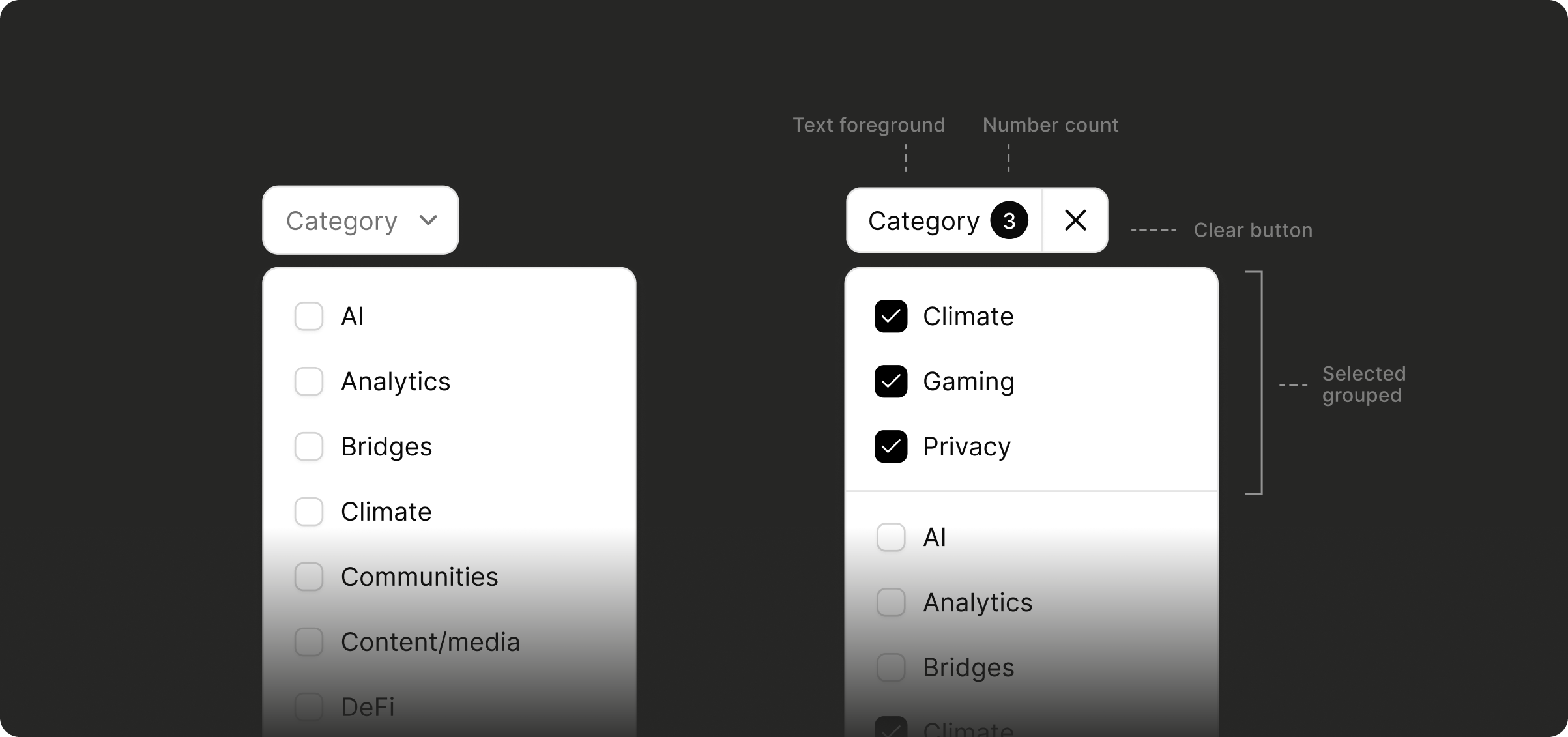 Multi-select filtering I designed and coded, replacing single-option system